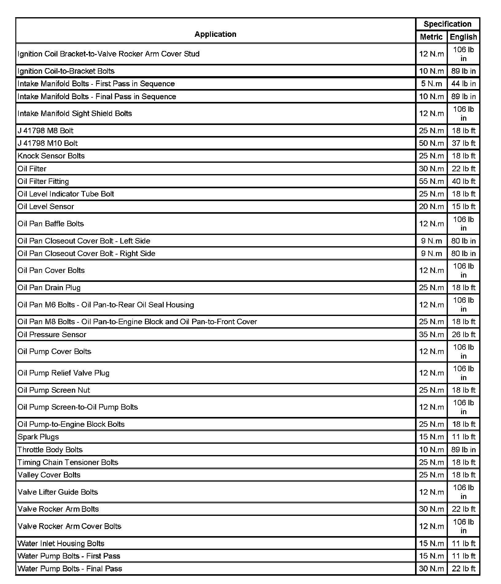 Fastener Tightening Specifications