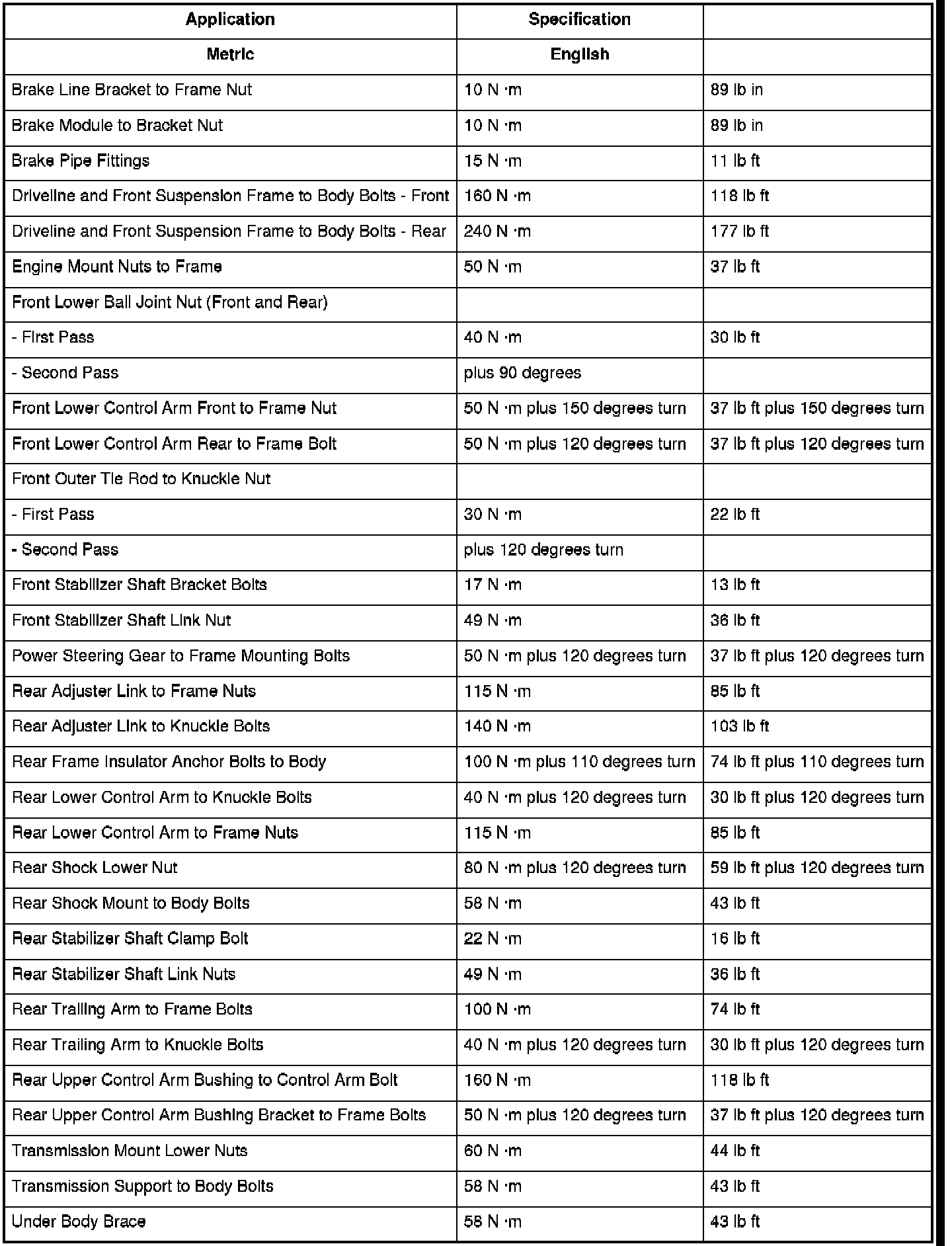 Fastener Tightening Specifications