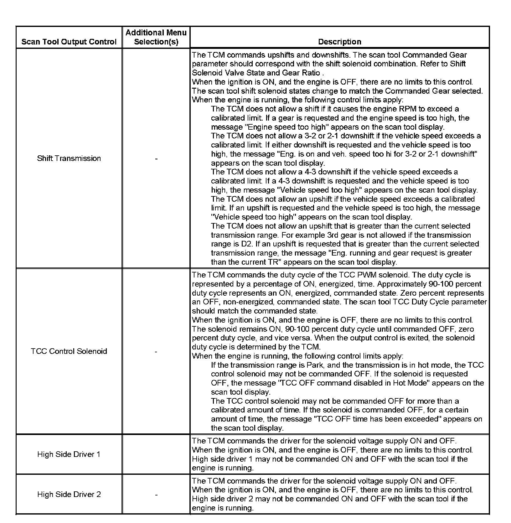 Scan Tool Output Controls