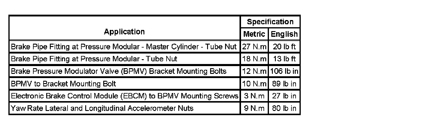 Fastener Tightening Specifications: