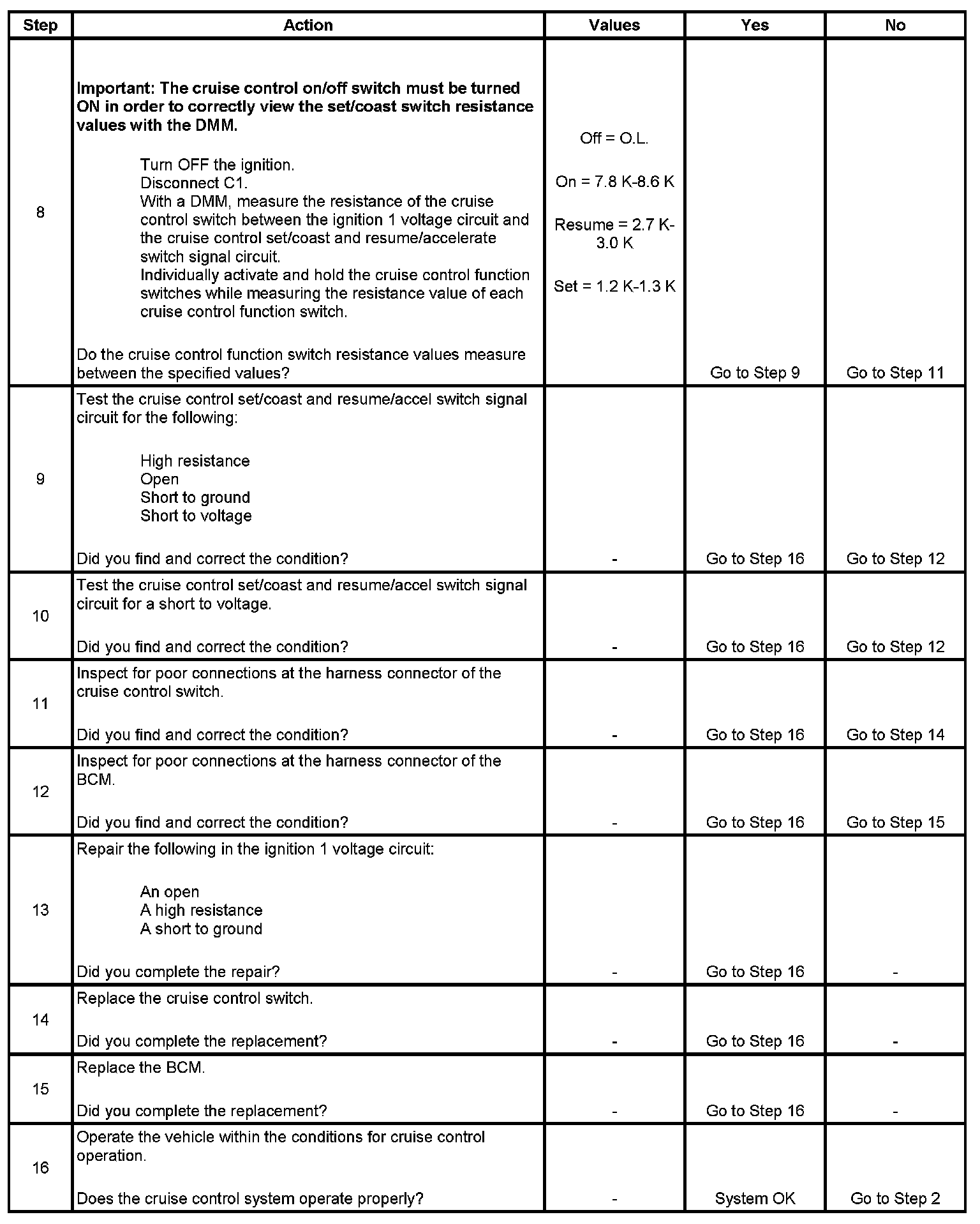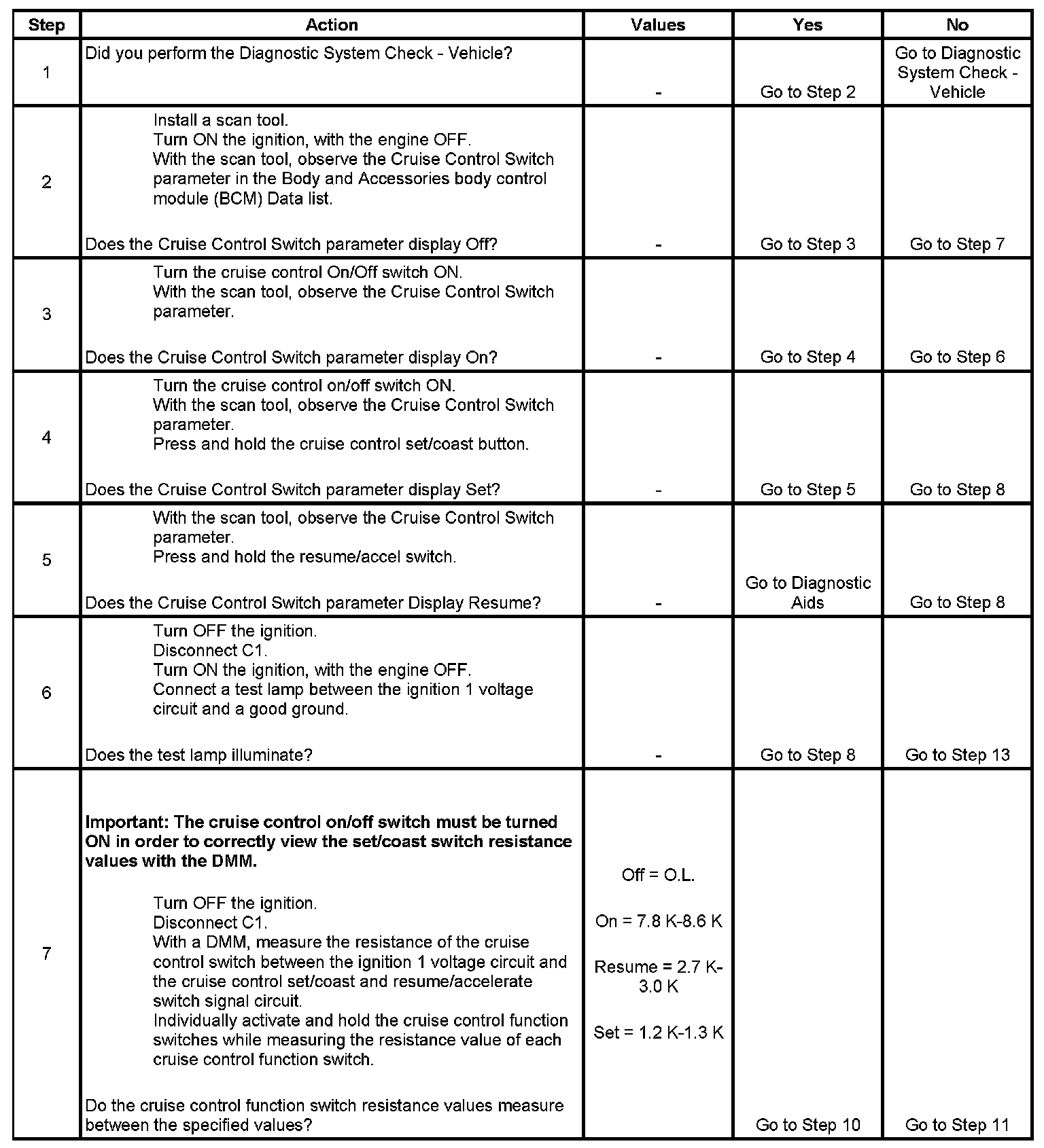 * Ensure that the following cruise control switches are not stuck in the engaged position: