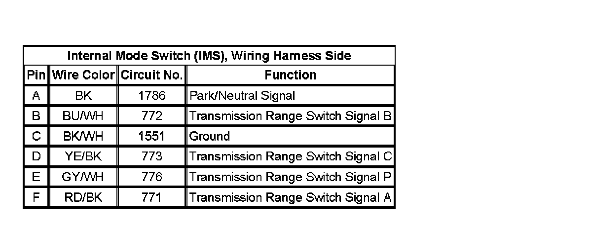 Internal Mode Switch (IMS), Wiring Harness Side: