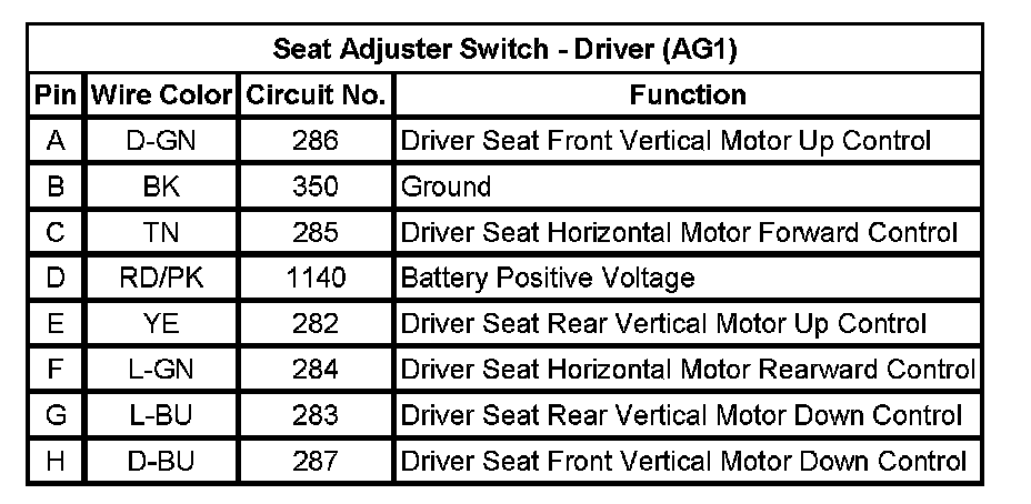 Seat Adjuster Switch - Driver (AG1)