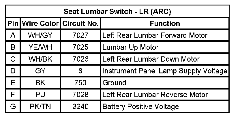 Seat Lumbar Switch - LR (ARC)
