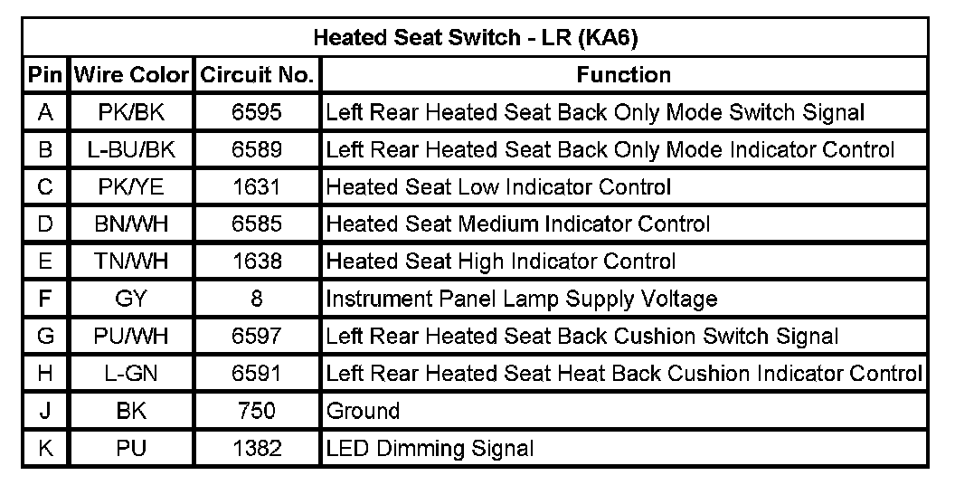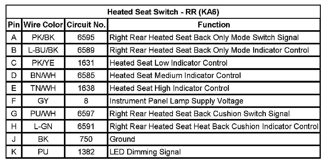 Heated Seat Switch - RR (KA6)