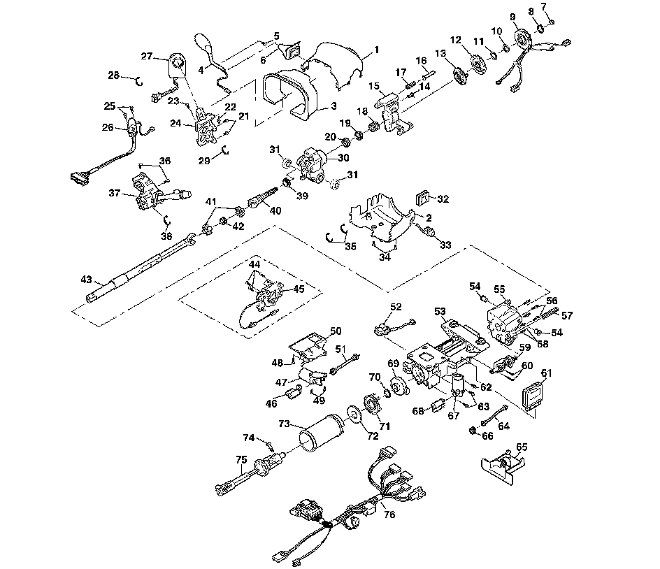 Steering Column Disassembled View (Power Tilt and Telescope, Col Shift)