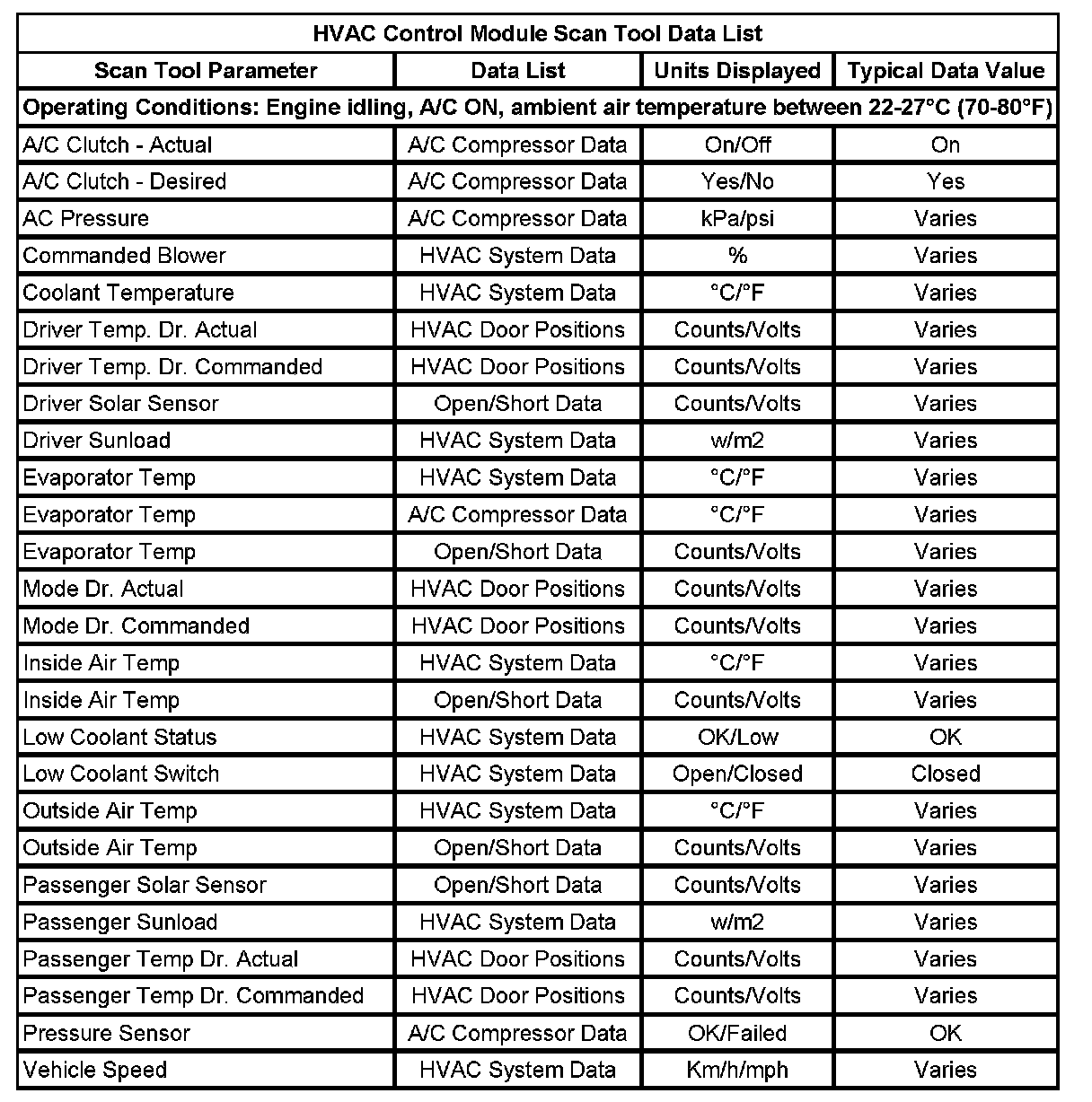 Scan Tool Data List