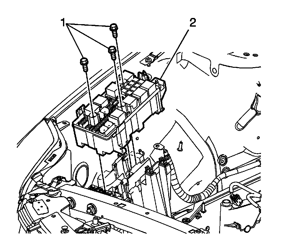 7. Remove the fasteners (2) securing the electrical center to vehicle.