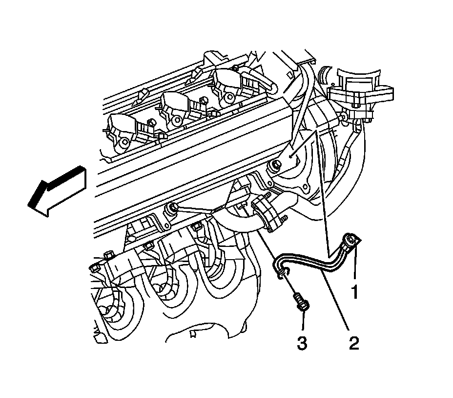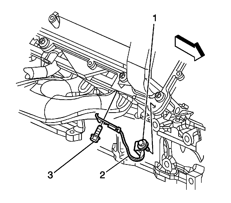 3. Install the ICM ground strap bolt (3) to the cylinder head.