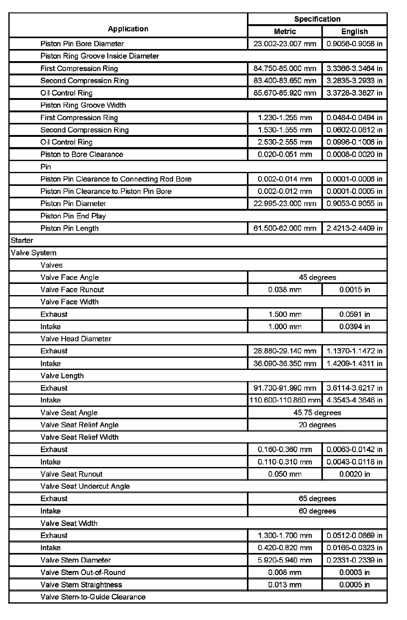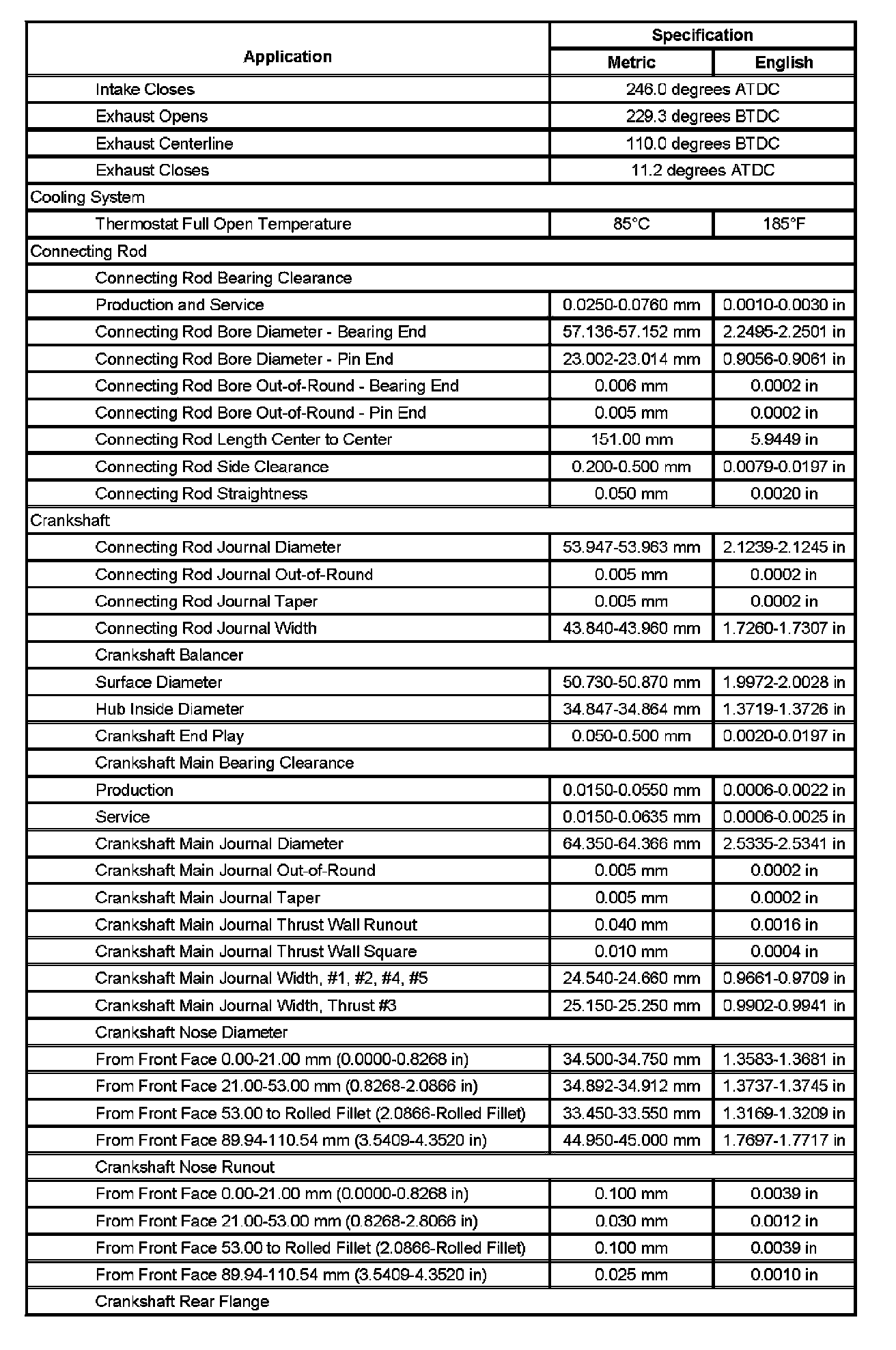 Engine Mechanical Specifications (L37) (Part 4):