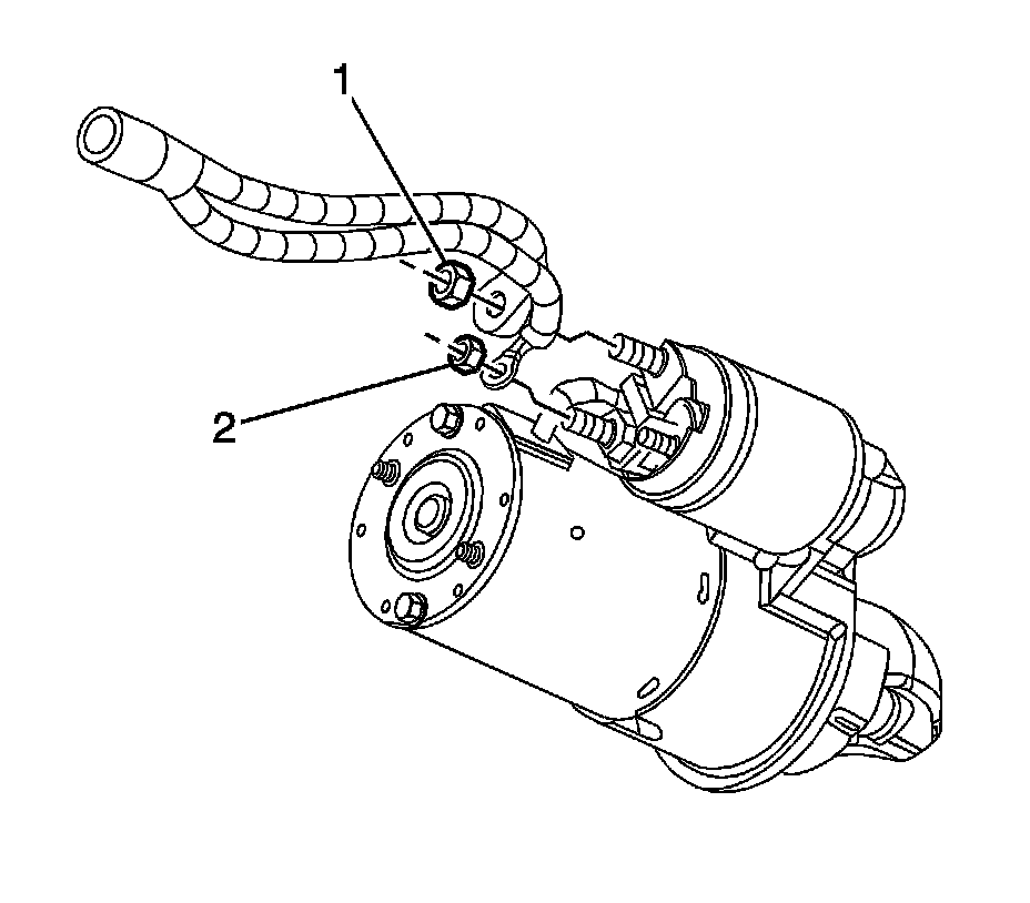 4. Install the "S" terminal nut (2) to the starter.