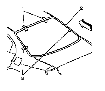 Important: Removal of the rear window requires the replacement of the rear window reveal molding (1).