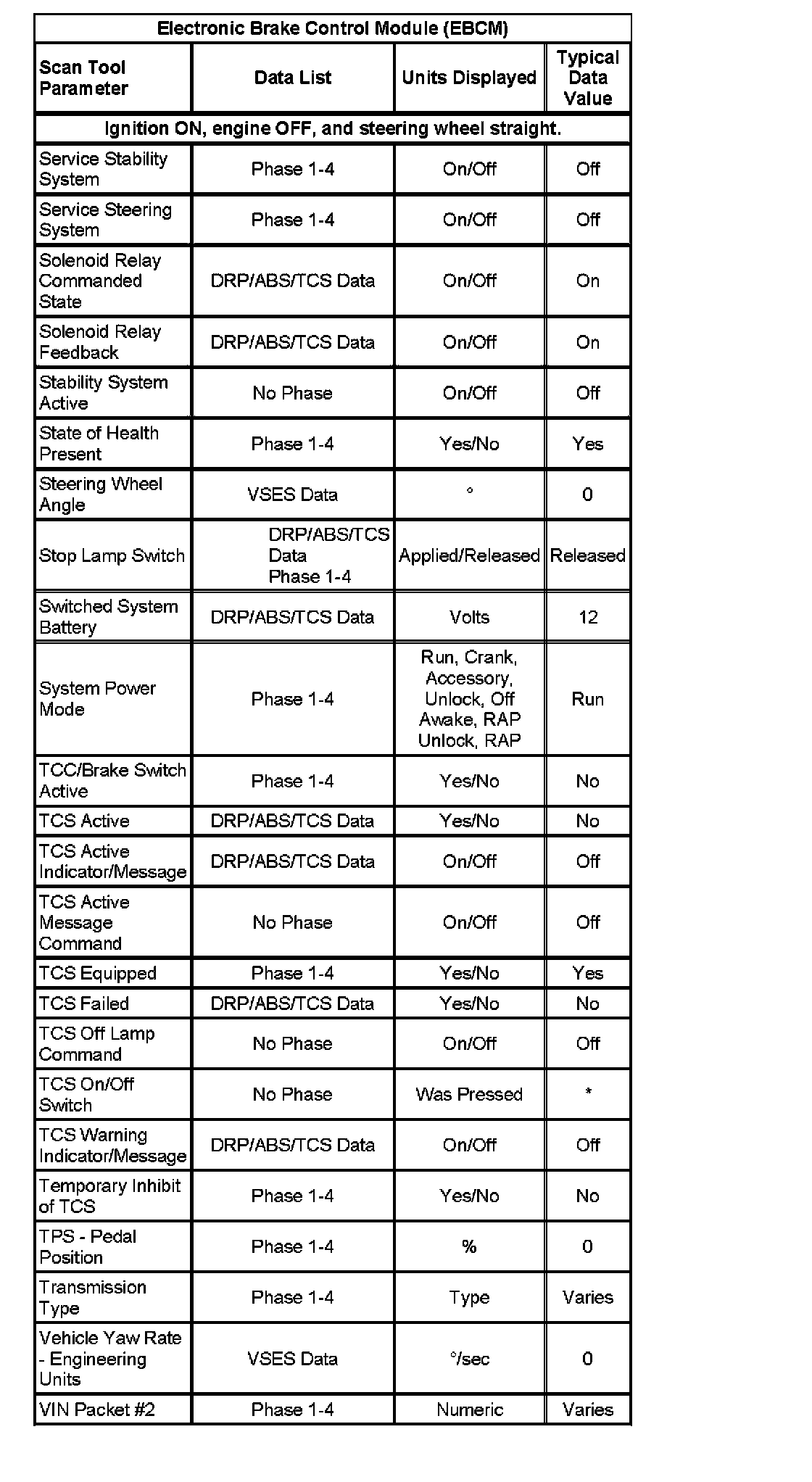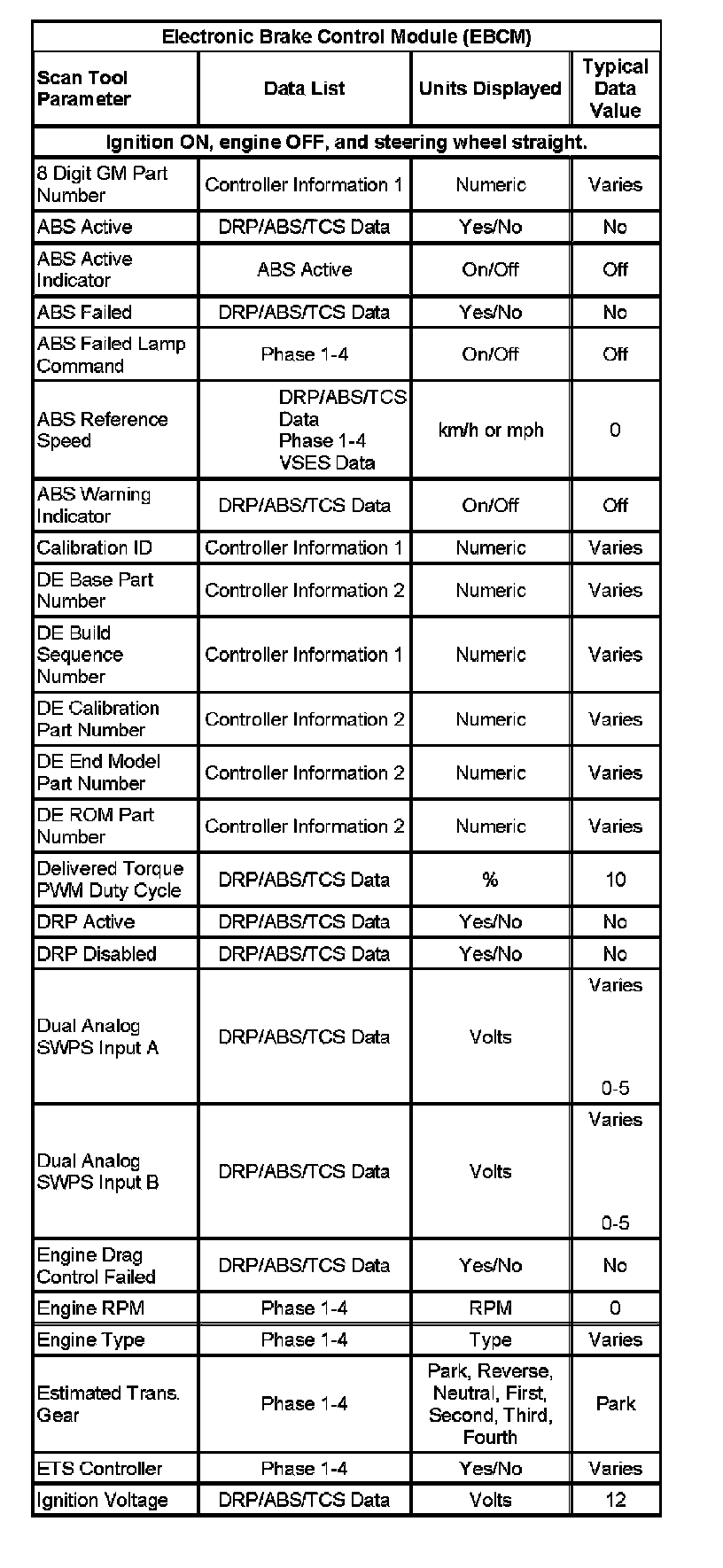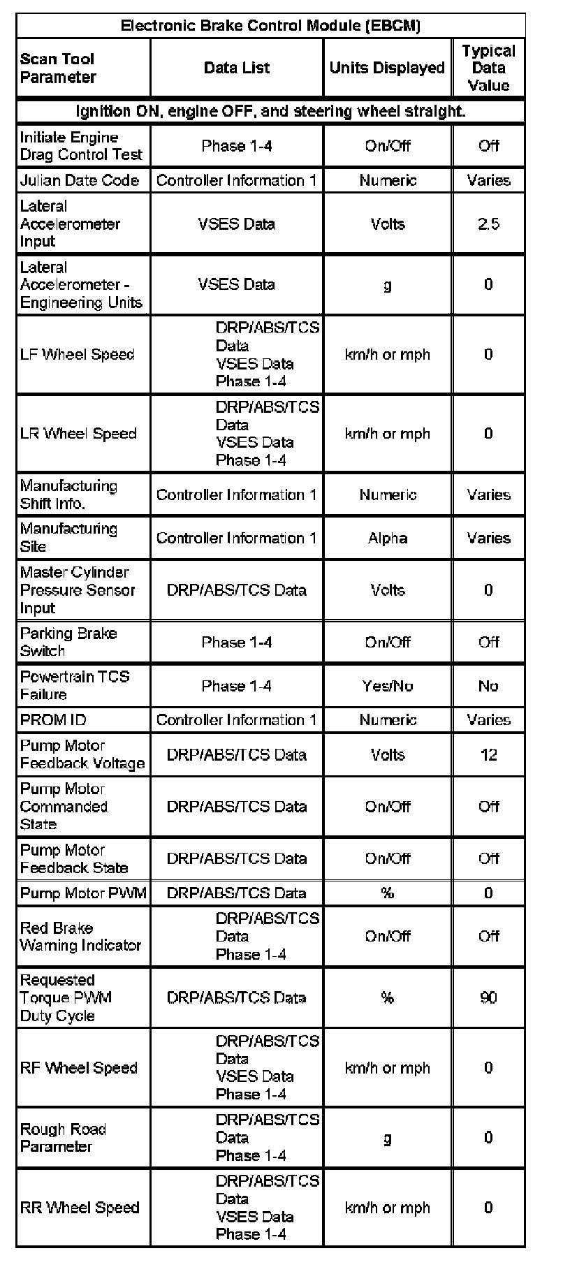 Scan Tool Data List
