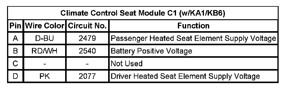 Climate Control Seat Module C1 (w/KA1/KB6)