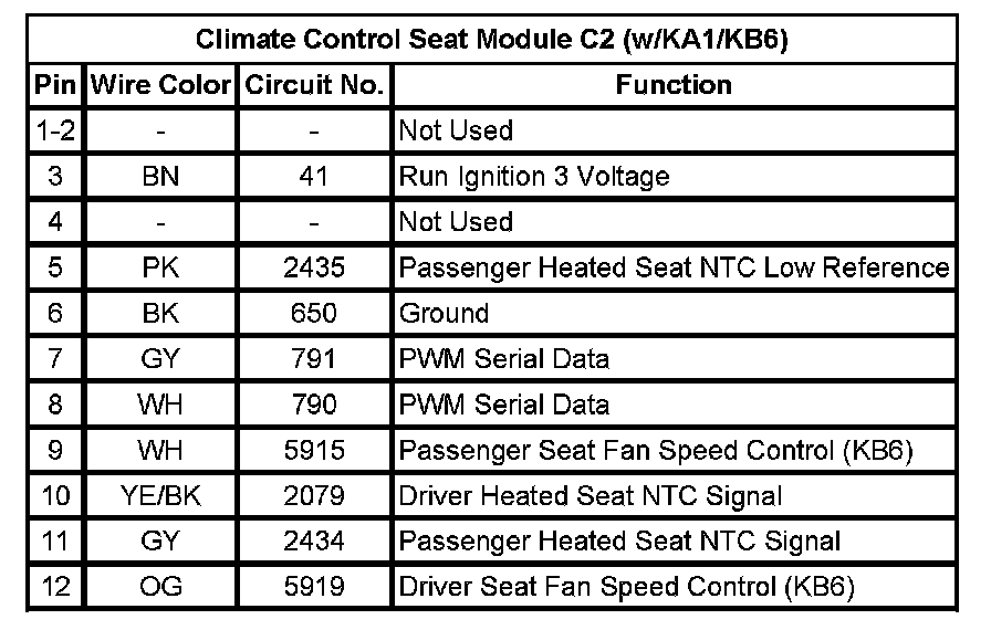 Climate Control Seat Module C2 (w/KA1/KB6)