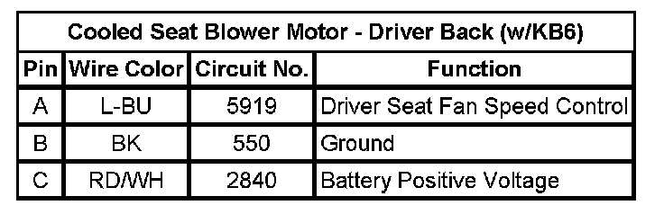 Cooled Seat Blower Motor - Driver Back (w/KB6)