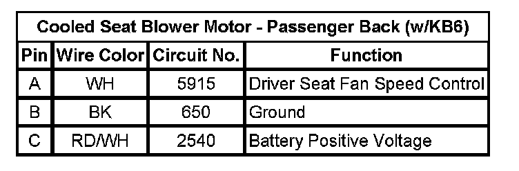 Cooled Seat Blower Motor - Passenger Back (w/KB6)