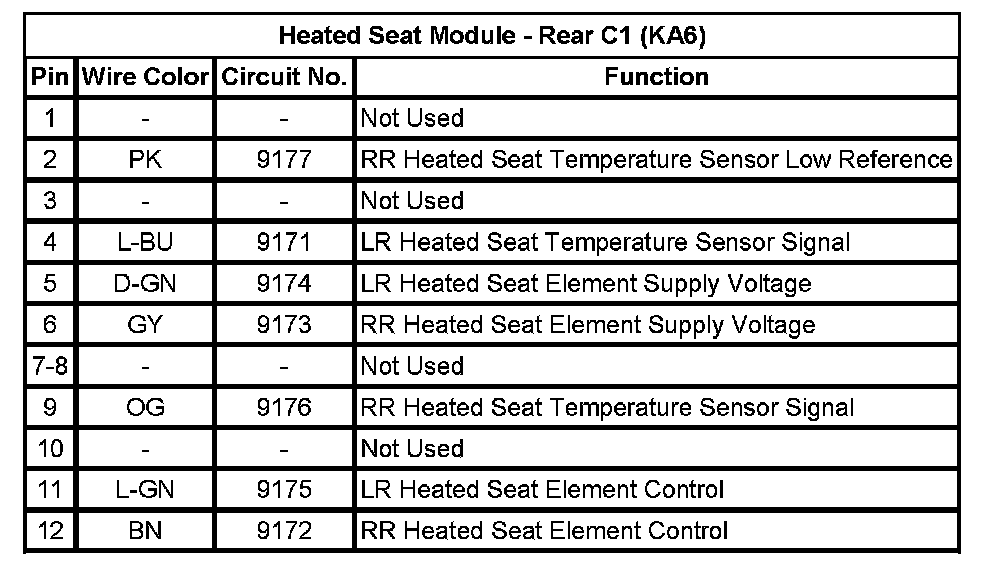 Heated Seat Module - Rear C1 (KA6)