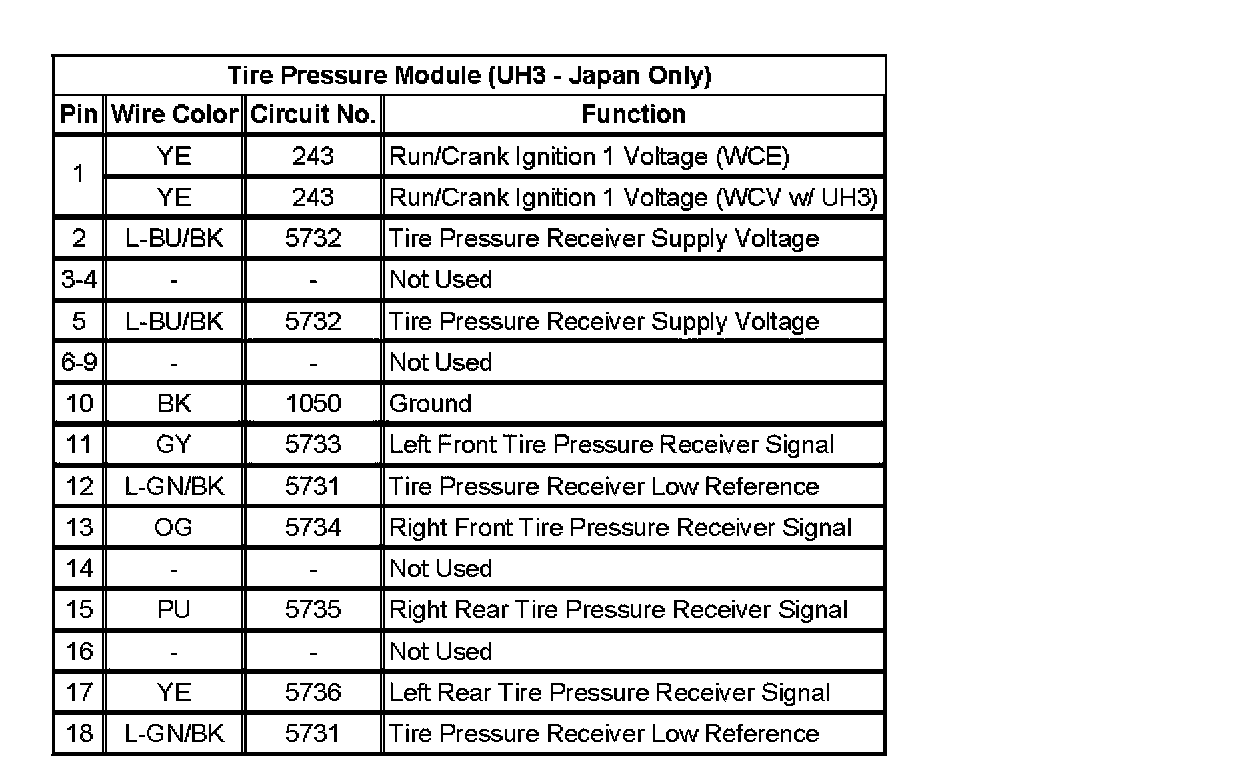 Tire Pressure Module (UH3 - Japan Only):