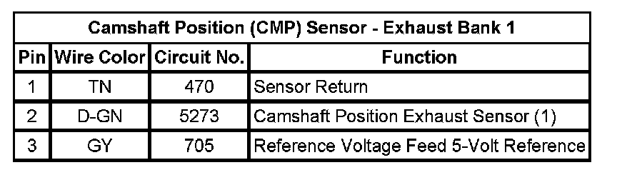 Camshaft Position (CMP) Sensor - Exhaust Bank 1