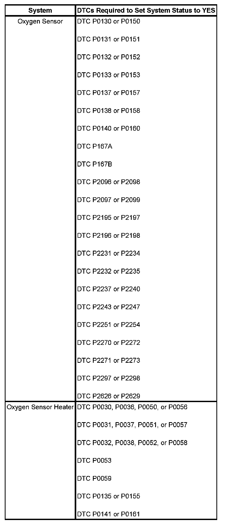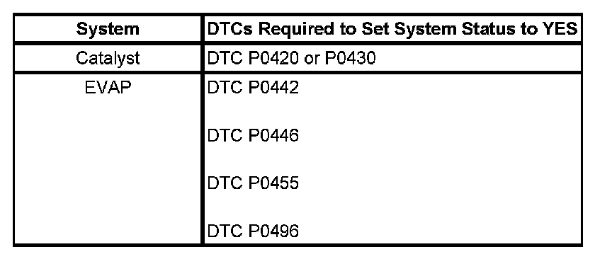 Inspection/Maintenance (I/M) System DTC Table