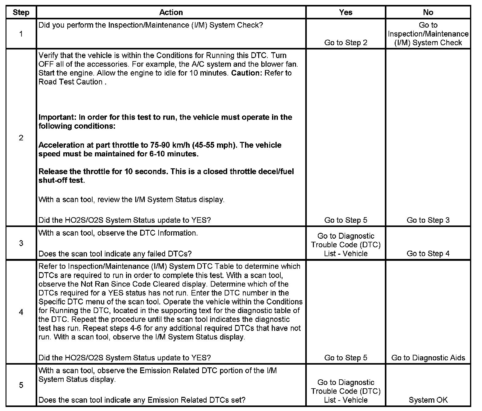 5. The I/M System Status only reports on whether or not a diagnostic has run, not what the outcome of the test was. If any Emission Related DTC sets after the tests are complete, the DTC will require diagnosis.