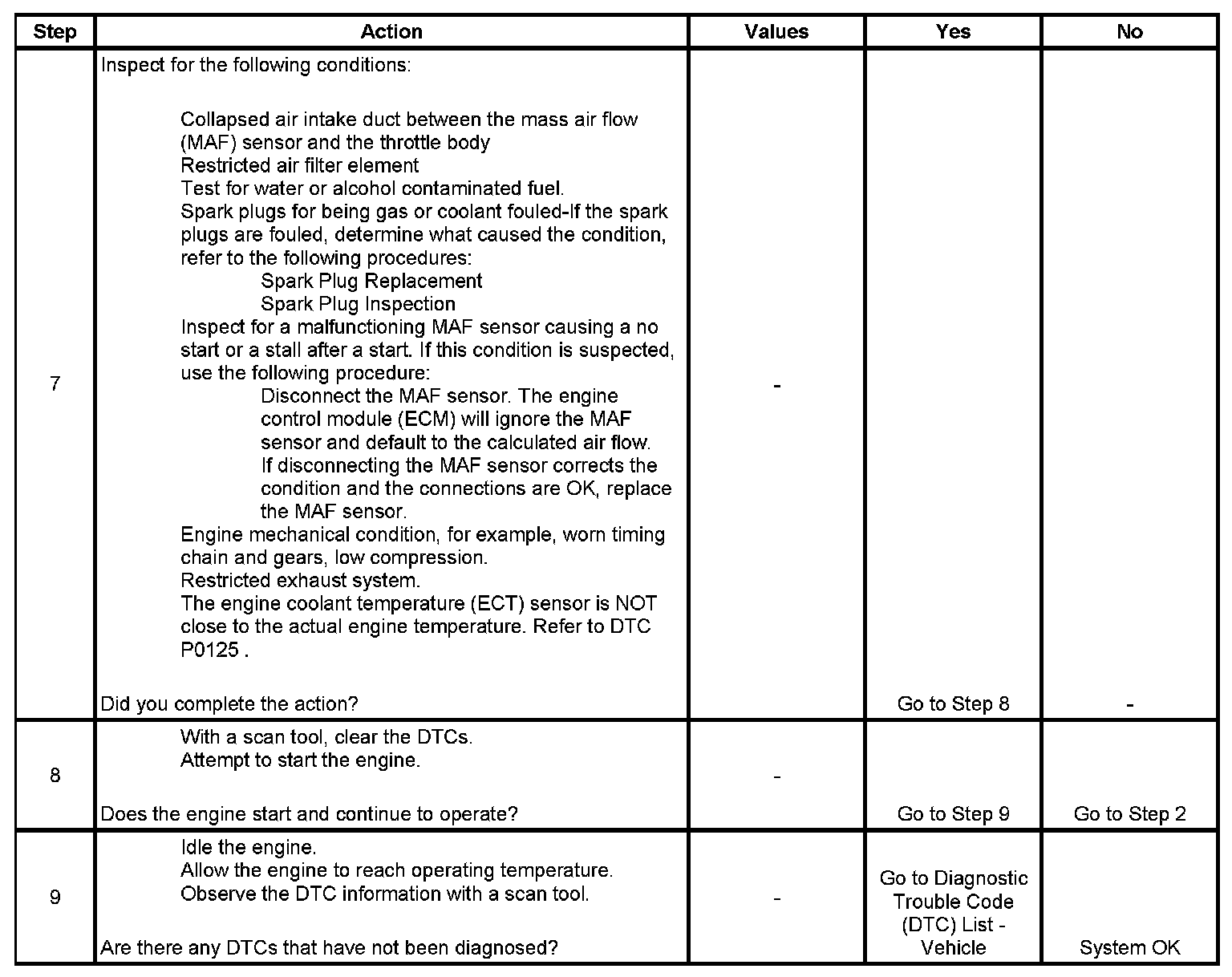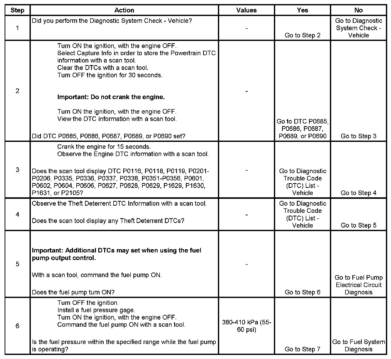 The Engine Cranks but Does Not Run diagnostic table is an organized approach to identifying a condition that causes an engine not to start. The Engine Cranks but Does Not Run diagnostic table directs the service technician to the appropriate system diagnosis.