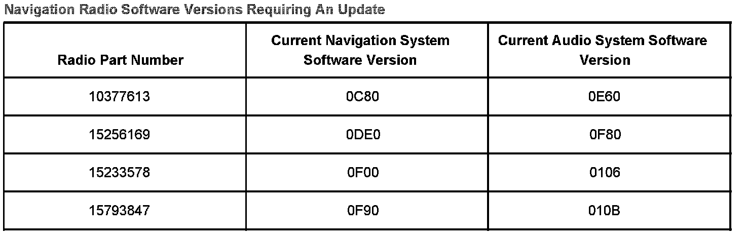Navigation Radio Software Versions Requiring An Update