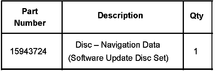 Obtain a software upgrade disc set by contacting the GM Navigation Disc Center at 1-877-628-3472 per Corporate Bulletin Number 06-08-44-012A (DVD Navigation Update Program, AVN Software Update Discs and Ordering Information). The center will require your BAC code, dealer code and shipping address. Advanced Vehicle Navigation (AVN) software discs are for the dealer to update the navigation radio software only. They DO NOT update or replace the navigation map disc that is supplied with the vehicle. Please order these parts only as needed. There is a limited supply of these discs available. Do not order these discs for stock. The AVN software update discs can be used to reprogram more than one vehicle. The first update disc for each part number is free. Subsequent copies of the same part number for the same dealer will cost $50.