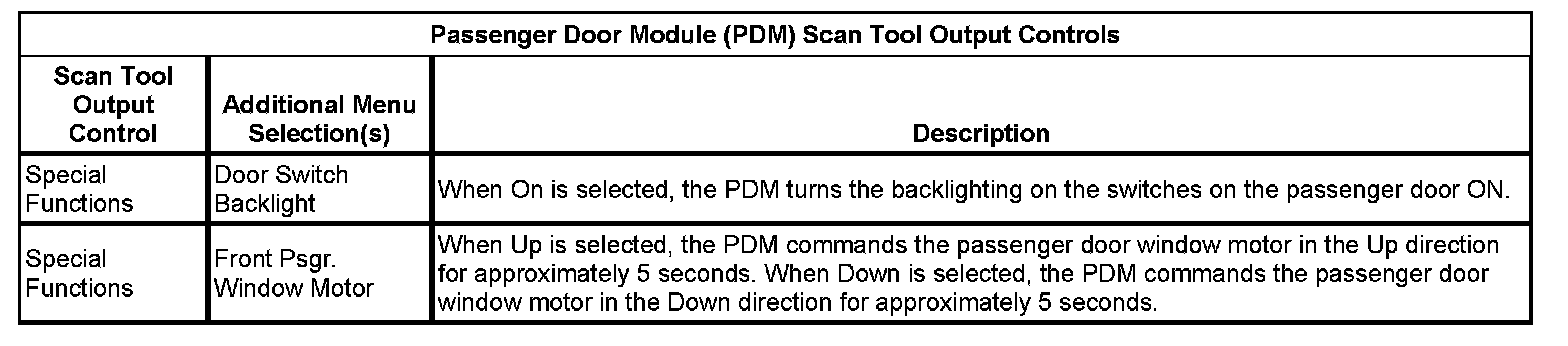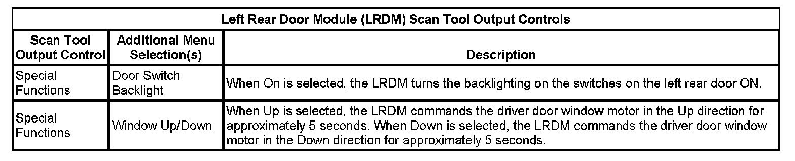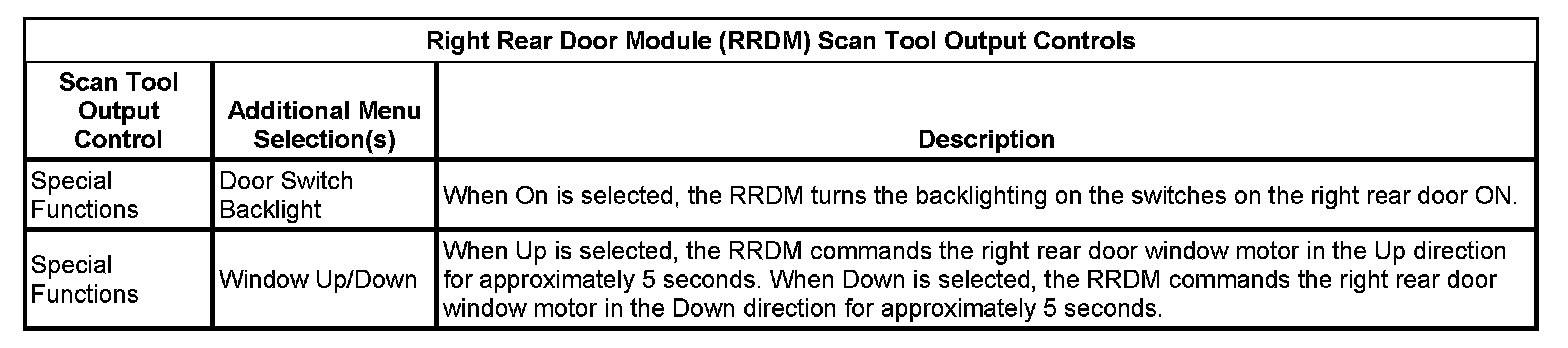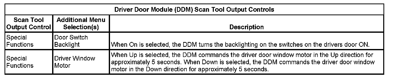 The Scan Tool Output Controls for the following control modules is located in the Special Functions section of the Scan Tool Menu.