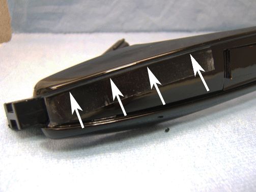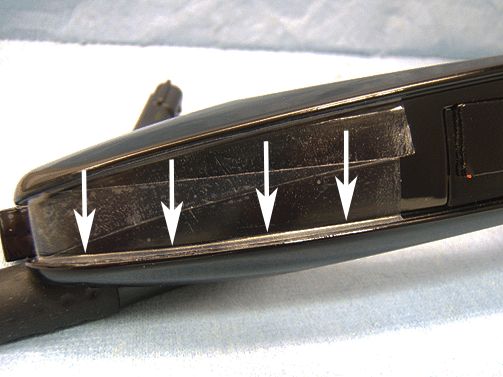 1. Prepare two 12 mm (1/2 in) X 80 mm (3-1/4 in) pieces of 3M #9325 Squeak Reduction Tape*, or equivalent.