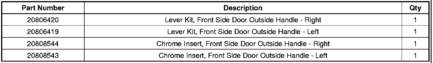 1. Remove the affected front side door outside handle. Refer to Front Side Door Outside Handle Replacement in SI.