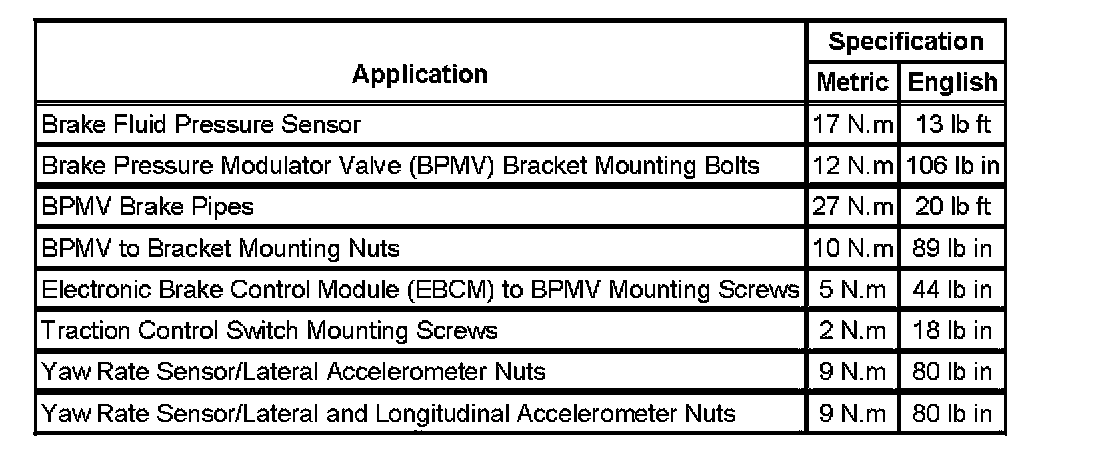 Fastener Tightening Specifications: