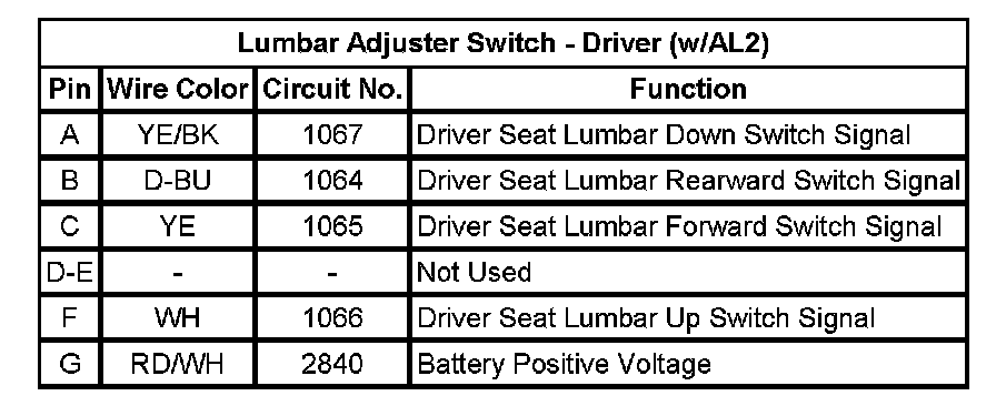 Lumbar Adjuster Switch - Driver (w/AL2)