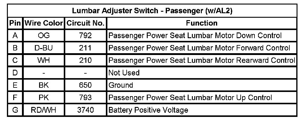 Lumbar Adjuster Switch - Passenger (w/AL2)