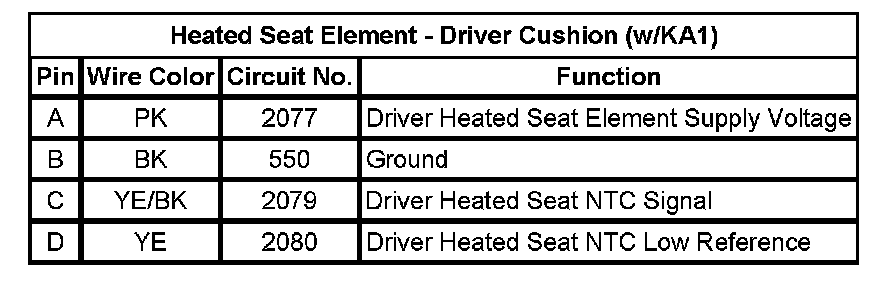 Heated Seat Element - Driver Cushion (w/KA1)