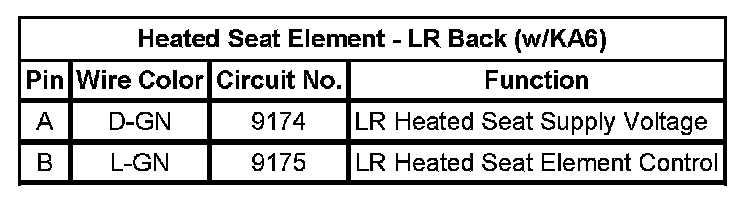 Heated Seat Element - LR Back (w/KA6)