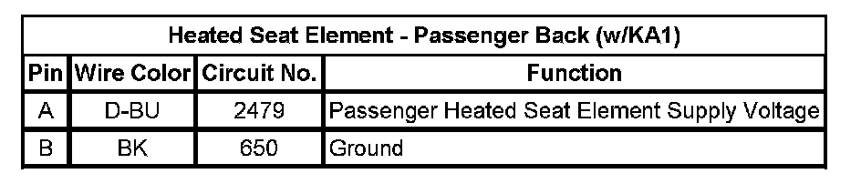 Heated Seat Element - Passenger Back (w/KA1)