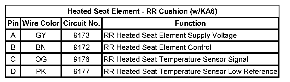 Heated Seat Element - RR Cushion (w/KA6)
