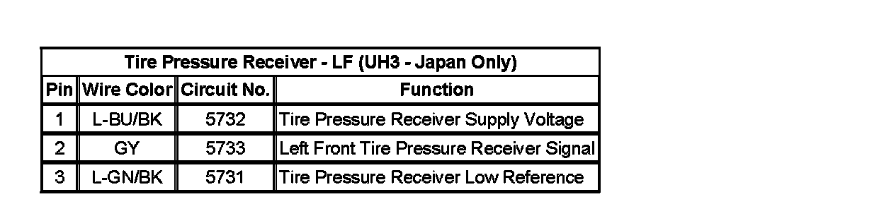 Tire Pressure Monitoring System Connector End ViewsTire Pressure Receiver - LF (UH3 - Japan Only):