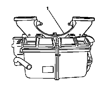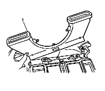 3. Press in on the tab to release the defroster duct (1) from the HVAC module.
