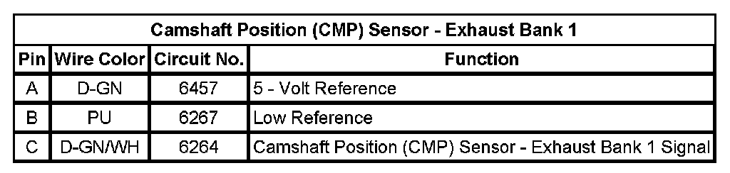 Camshaft Position (CMP) Sensor - Exhaust Bank 1