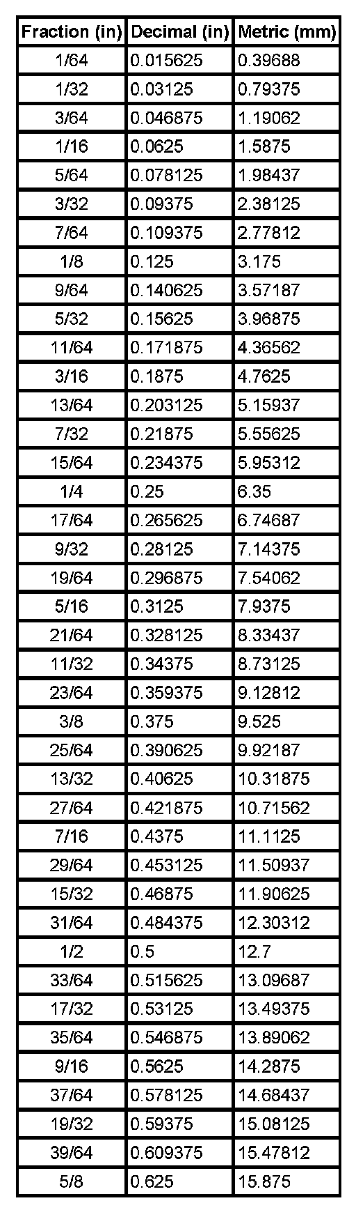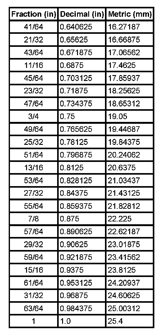 Decimal and Metric Equivalents