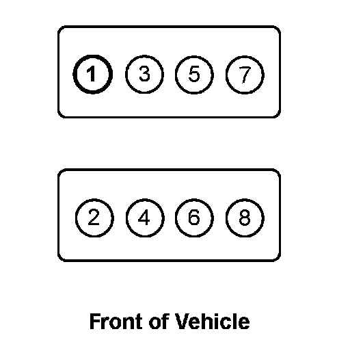 The left, front, bank of cylinders are number 2-4-6-8 and the right, rear, bank cylinders are 1-3-5-7.