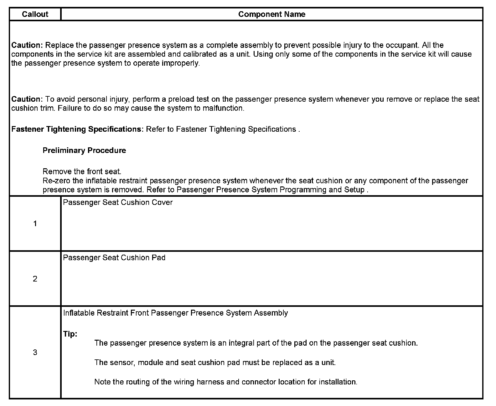 Inflatable Restraint Passenger Presence System Replacement - Front