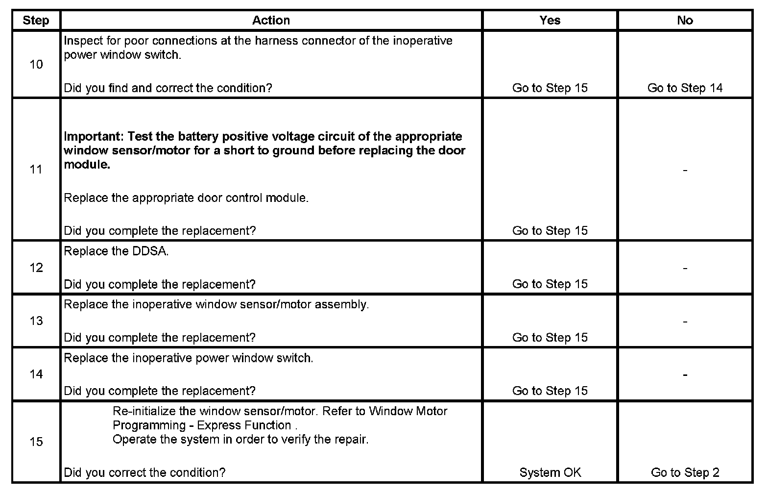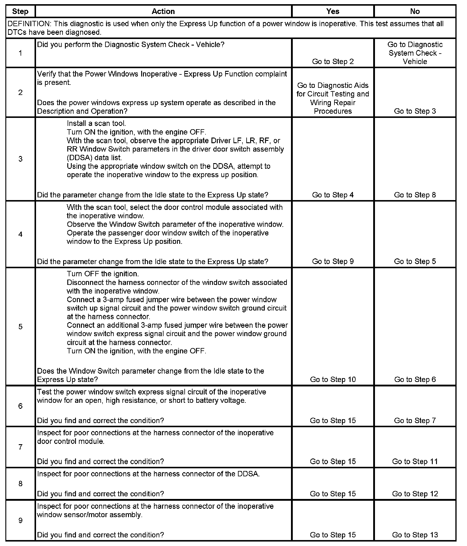 Power Window Express Up Function Inoperative
