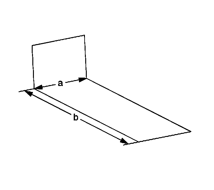 4. Mark two points (a, b) on the left side of the rear window glass from the roof sheet metal using an erasable marker or chalk. Measure the same distances on the opposite side from the roof sheet metal and draw two lines across the rear window glass connecting points a and b.