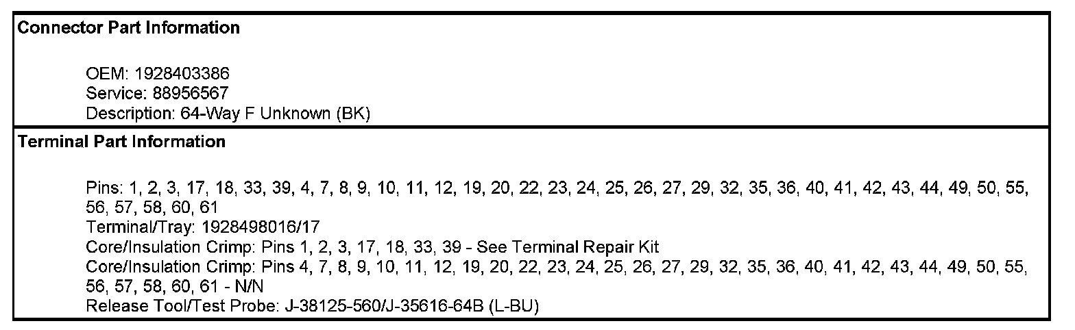 Engine Control Module (ECM) C1 (Pin 30 To 64):