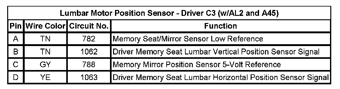 Lumbar Motor Position Sensor - Driver C3 (w/AL2 and A45)