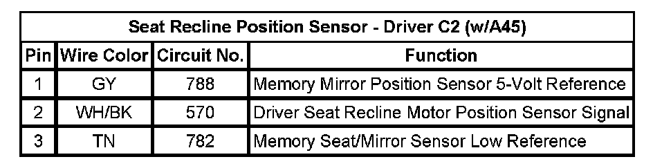 Seat Recline Position Sensor - Driver C2 (w/A45)